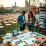 Wybór lokalizacji, lokalizacja powinna być blisko miejsca, w którym odbywa się impreza, lub przynajmniej w pobliżu. Należy również wybrać obszar, który jest wolny od budowy i innych zagrożeń. Dzięki temu łatwiej będzie Ci ustawić wszystko bez konieczności martwienia się o kwestie bezpieczeństwa. Upewnij się, że miejsce jest wystarczająco duże dla wszystkich gości i ich pojazdów, a także miejsc parkingowych dla nich podczas wesela. Sprawdź, jakie warunki pogodowe ma wybrany przez Ciebie lokal i upewnij się, że spełniają one Twoje potrzeby. Możesz również zapytać, czy ma jakieś ograniczenia dotyczące rodzaju ceremonii ślubnej, którą chcesz. Wiele hoteli pozwoli tylko na śluby w pomieszczeniach, więc może to być coś, co należy rozważyć przy wyborze miejsca. Ostatnią rzeczą, którą chcesz, jest zaplanowanie ślubu na świeżym powietrzu tylko po to, aby zrujnować go przez deszcz lub niskie temperatury. Dlatego upewnij się, że sprawdzisz prognozę przed wyborem daty i miejsca. Jeśli jest szansa na złą pogodę w wybranym dniu, rozważ przeniesienie go do wnętrza lub zmianę harmonogramu na inny czas, kiedy pogoda jest korzystniejsza.